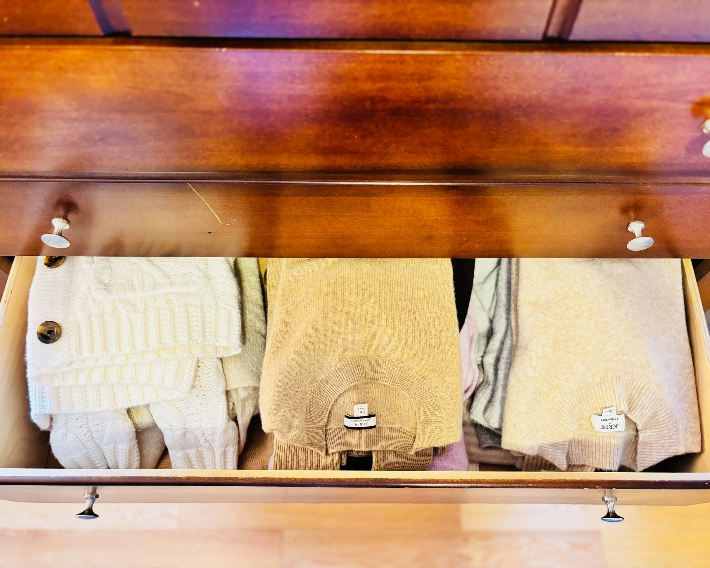 · Does the item fit me today? This is the most important question in my opinion. Our bodies change with age and however something may have fit in the past may not be how it fits you today. Try it on and be honest about how your clothes fit. An item that doesn’t fit and can’t be easily adjusted to fit is not something you should hang on to.