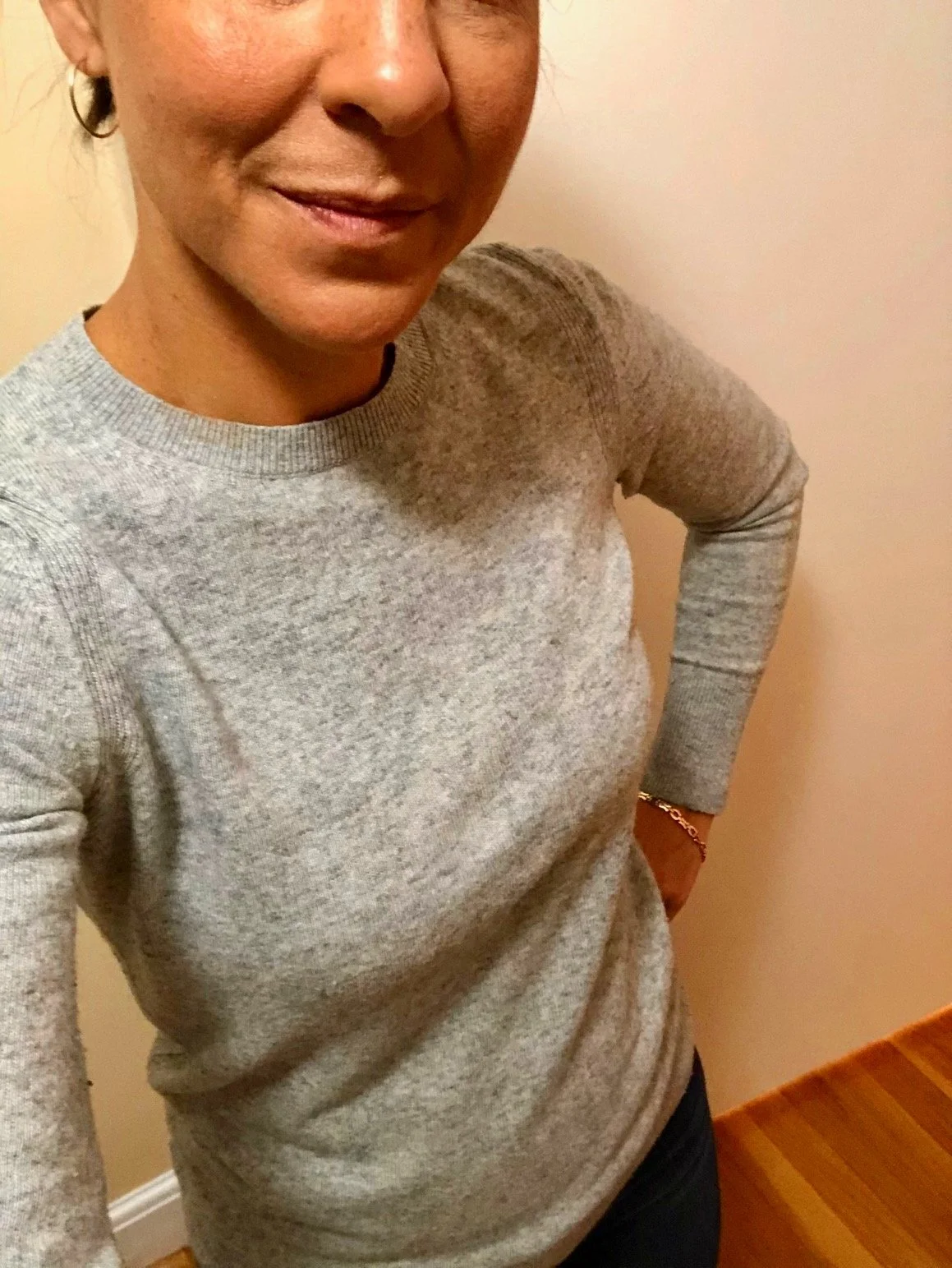 My classic gray crewneck merino wool sweater has been a go to in my closet for years.